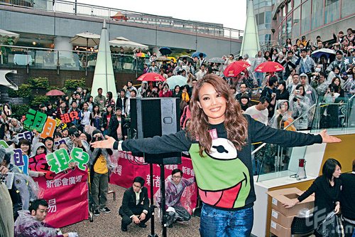 新浪娛樂訊 容祖兒12月26日晚成為新城頒獎禮大贏家后,12月27日在香港冒雨出席《Joey Yung Perfect 10 Live 2009簽名會》,歌迷送上自制的迷你花園,寓意她已從小花變成美麗的鮮花。27日的簽名會在香港露天廣場舉行,其間突然落下驟雨,祖兒為怕歌迷淋濕,極速為歌迷簽名。
