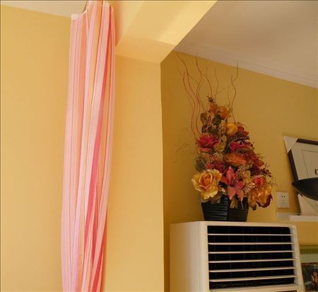 檸檬黃的色調(diào)搭配粉色的簾子,女人味十足。
