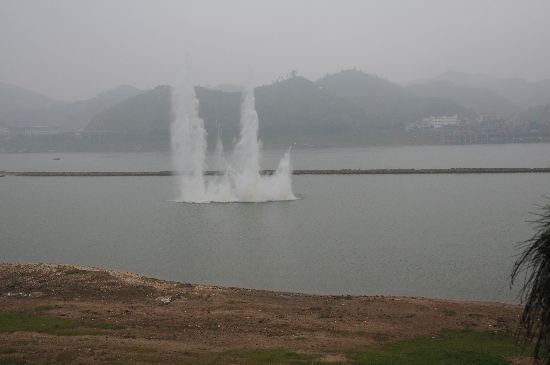 4月10日,梧州市塘源綜合碼頭舉行開工儀式,并實施了水下爆破作業(yè)。(攝影:古振坤 張李妍)