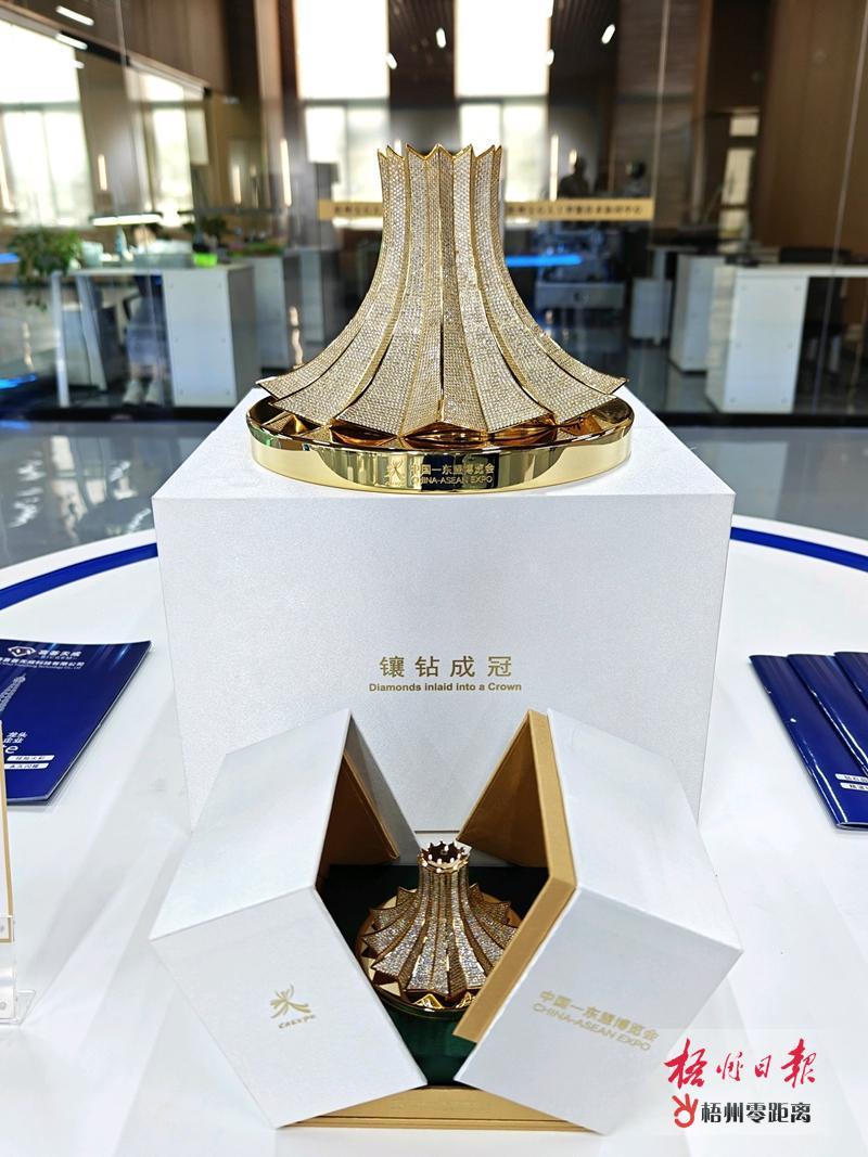 梧州寶石作品“鑲鉆成冠”憑借獨(dú)特的設(shè)計(jì)與精湛工藝,被選定為大會(huì)官方指定貴賓紀(jì)念品,將作為重要信物贈(zèng)送給東盟各國(guó)貴賓。梧州日?qǐng)?bào)記者 陳凡 攝
