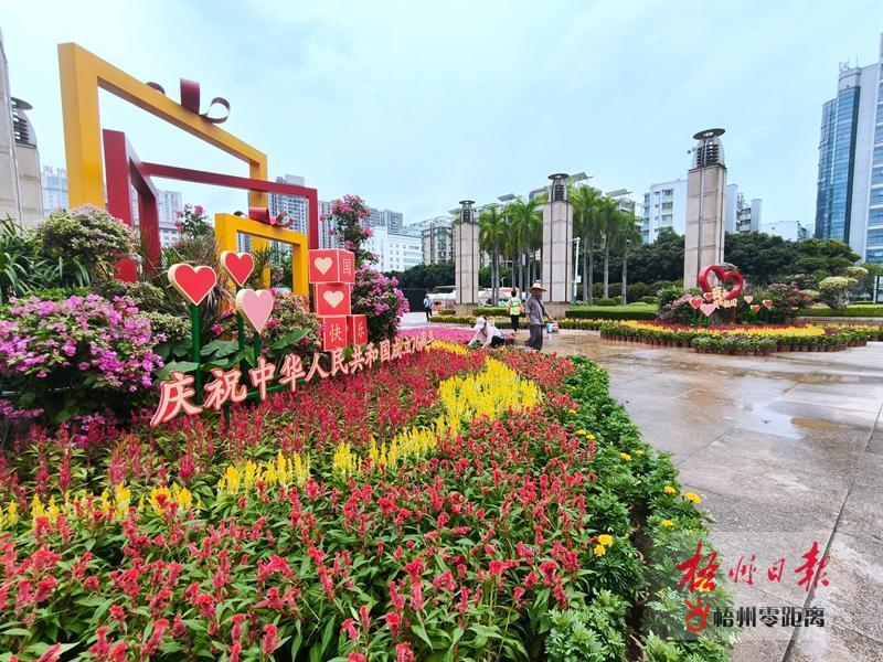 國慶節和中秋節臨近,市園林綠化部門組織工人在市政廣場、西堤公園等搭建節慶鮮花景觀,營造喜慶熱鬧的節日氣氛。梧州日報
