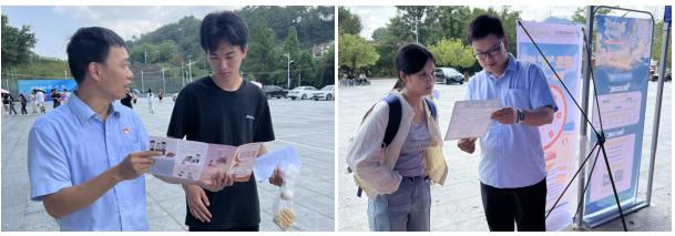 本次活動內容豐富,形式多樣。郵儲銀行梧州市分行工作人員通過發放宣傳折頁、設置咨詢臺、現場互動講解等多種方式,聚焦與學生和家長密切相關的金融安全熱點問題,量身定制了差異化的宣傳內容,吸引了眾多學生及家長積極參與。