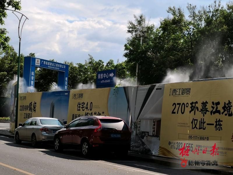 隨后,記者向項目施工方了解到,除了下雨天,噴淋系統整天不間斷噴水降塵。