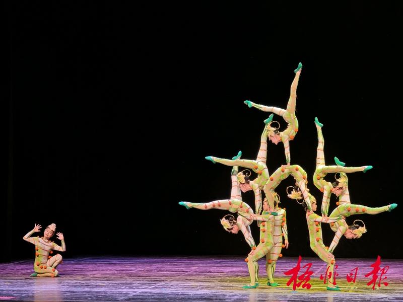 11月8日,創(chuàng)意雜技劇《百越稻盛》在市文化展覽中心舉行,雜技演員們的精彩表演贏得觀眾陣陣掌聲。 記者 何鎏 攝