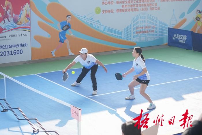 12月6日,選手們在賽場上盡情揮拍。為推廣匹克球運動,當日,廣西匹克球超級聯賽梧州市級賽在梧州軍事體育文化園舉行,吸引約270名運動愛好者參賽。 梧州日報記者 楊揚 攝